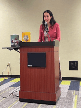“The Measure” author Nikki Erlick speaks in Building 5 on Tuesday, Nov. 4. Photo courtesy Christine Whitney.