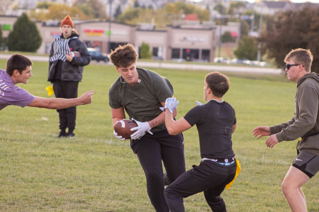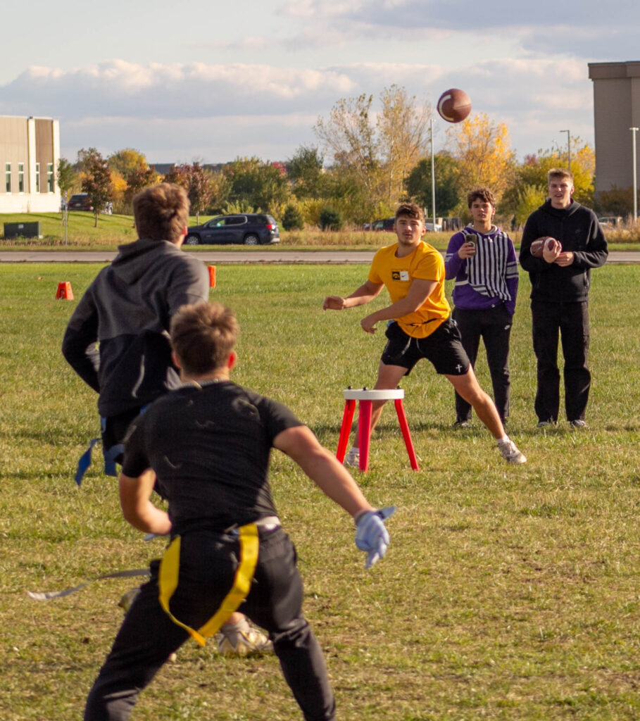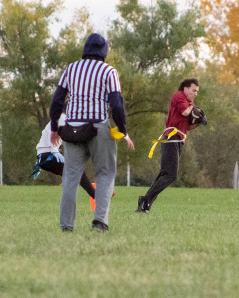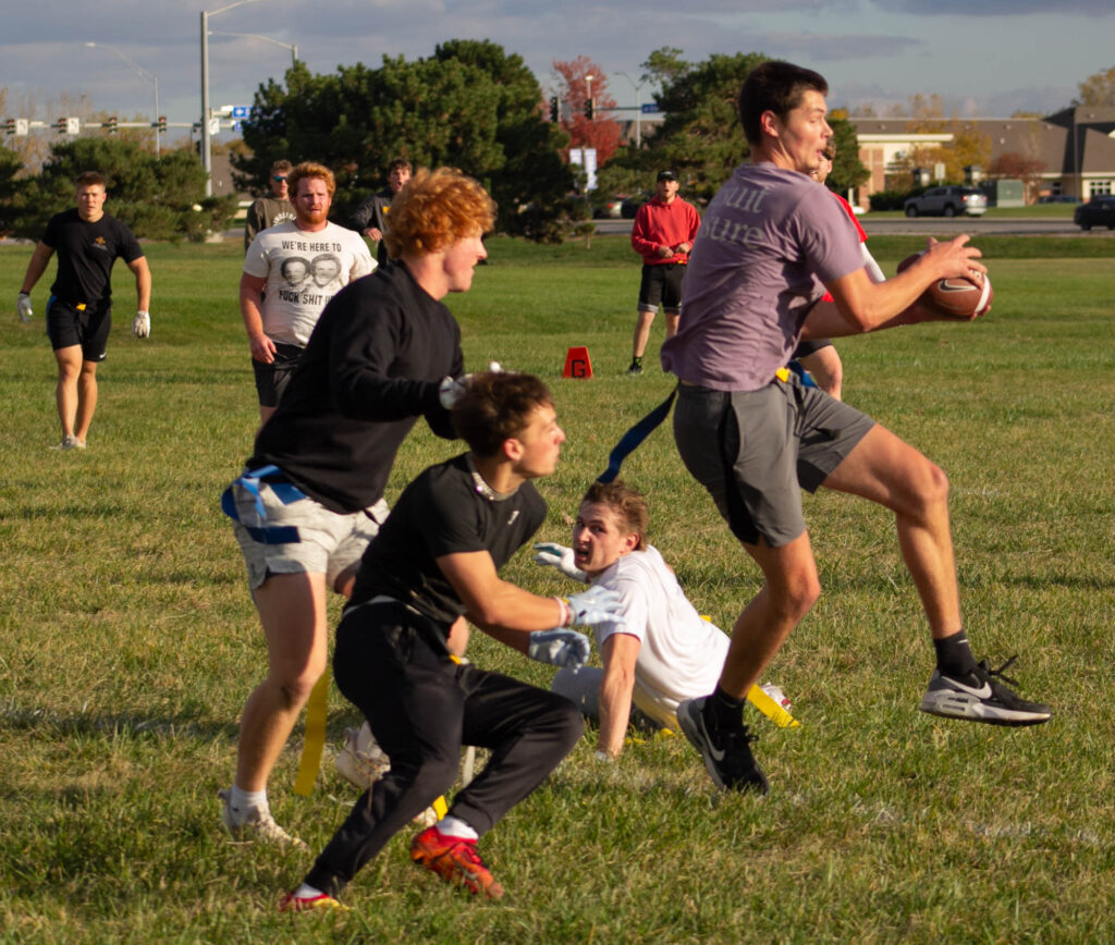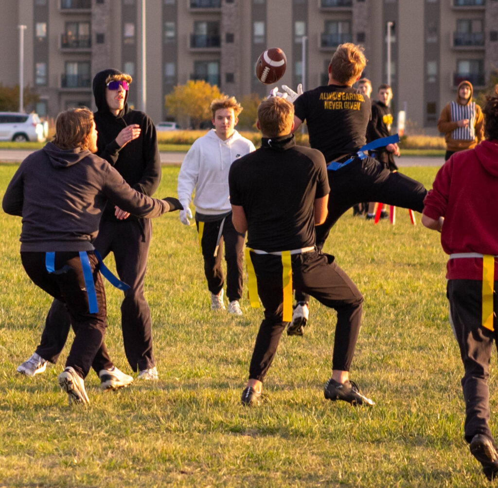 DMACC Intramural Flag Football held its playoffs and championship game on Wednesday, October 29, on the intramural fields outside Ankeny Campus. The 1st game between The Ball Busters and Gretchies Good Boys ended in a nail biter in a score of 40 to 39 as the 2nd playoff game between the Washington Redskins and Caucasian Invasion ended with a score of 32 to 26. The championship game went down to the wire in a score of 35 to 32 as the Washington Redskins came out on top as the champion Flag Football team of the season. The winning team will play Simpson College later in the Spring for the annual championship to determine the true college intramural champion. For now, the winning team was awarded t-shirts that read “The greatest show on campus”. (Photos courtesy Jayden “JJP” Park)