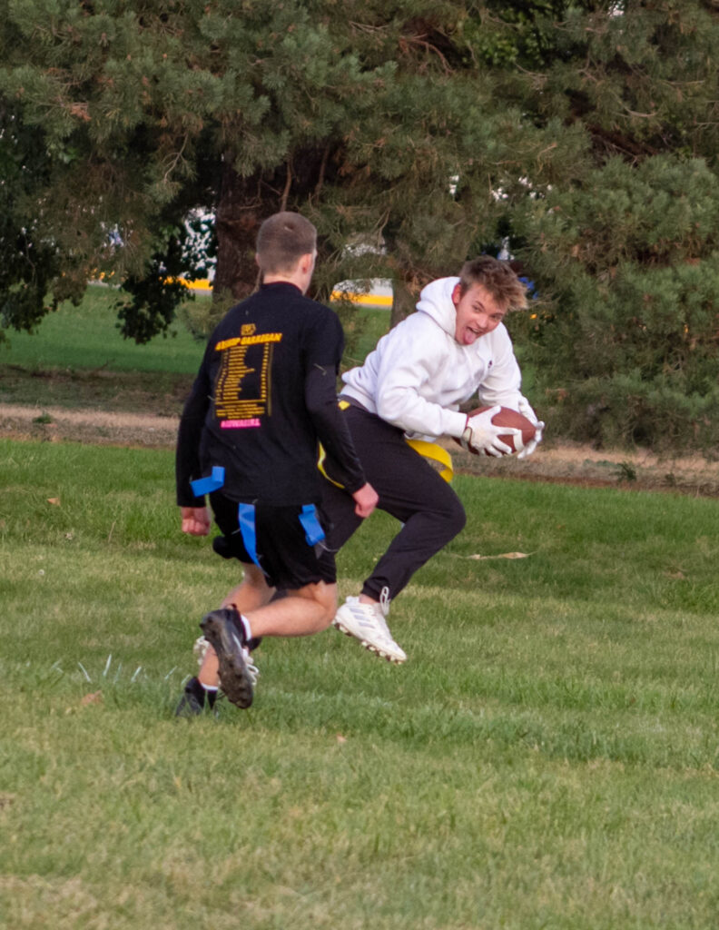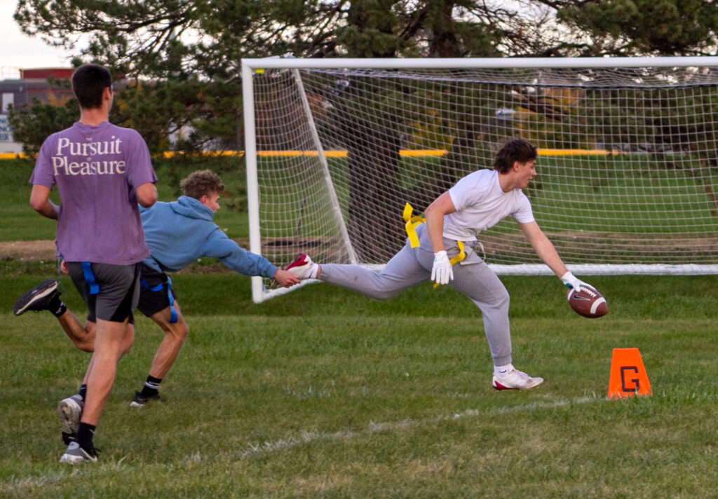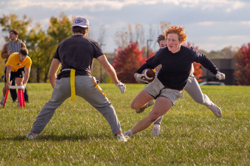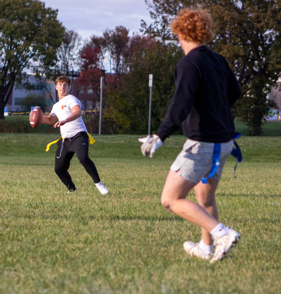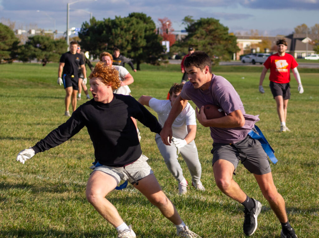 DMACC Intramural Flag Football held its playoffs and championship game on Wednesday, October 29, on the intramural fields outside Ankeny Campus. The 1st game between The Ball Busters and Gretchies Good Boys ended in a nail biter in a score of 40 to 39 as the 2nd playoff game between the Washington Redskins and Caucasian Invasion ended with a score of 32 to 26. The championship game went down to the wire in a score of 35 to 32 as the Washington Redskins came out on top as the champion Flag Football team of the season. The winning team will play Simpson College later in the Spring for the annual championship to determine the true college intramural champion. For now, the winning team was awarded t-shirts that read “The greatest show on campus”. (Photos courtesy Jayden “JJP” Park)