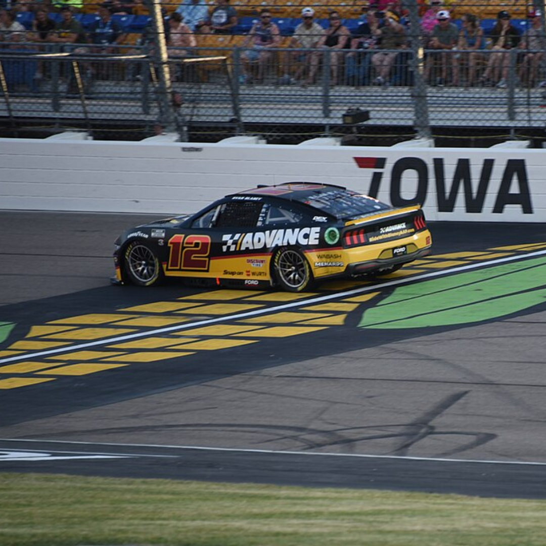 2023 NASCAR Cup Series champion Ryan Blaney en route to winning the inaugural Iowa Corn 350 at Iowa Speedway on June 16, 2024. Photo by Senior Master Sgt. Vincent De Groot via Wiki Commons.